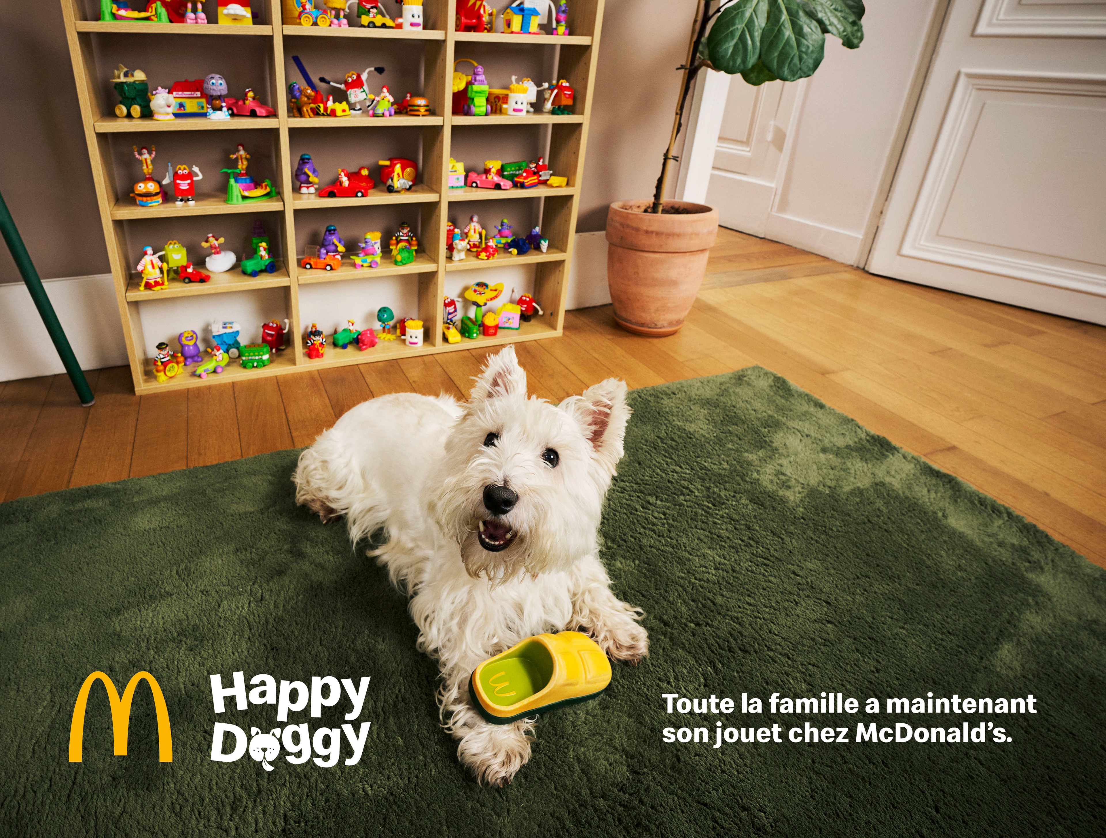 Avec Happy Doggy, toute la famille a maintenant son jouet chez McDonald's. Depuis toujours, l’enseigne accompagne les moments de vie des familles à travers des expériences ludiques, dont le Happy Meal™ et ses jouets iconiques. En 2025, cette promesse s’élargit à un nouveau membre de la famille devenu incontournable : le chien. Dans un pays où 1 Français sur 3 vit avec un compagnon à quatre pattes — un lien particulièrement fort chez les Gen Z — McDonald’s France s'est associé à DDB Paris pour lancer Happy Doggy et la Dog Toys Collection : la première collection de jouets pour chiens signée McDonald’s. Une série de quatre jouets exclusifs, inspirés des codes emblématiques de l’enseigne (Chauss’Pom, Fly’Bun, Sundae’Ball et Fun’Fries), à rapporter à la maison pour prolonger l’expérience McDonald’s jusque dans le quotidien de son chien. Agence : DDB Paris Directeur de la création : Alexander Kalchev Directrice de création : Clara Noguier, Olivier Lelostec Directeur Artistique : Paul Chatin Conceptrice-rédactrice : Mathilde Gautier Responsables agence : Paul Ducré, Meryl Martin, Annaëlle Rivoal, Louise Cassola, Paola Battistini, Maureen Leriche, Céline Male Planneur stratégique : Cédric Ledoux Content Creator : Jordan Blondel, Eloi Vinet Social strategist : Louise Jacquemard Head of Production TV : Corinne Persch Assistante Production TV : Mary-Amely Le Bornec Production Son : Studio 5 Bande son : Cédric Boit, Clément Reynaud, Alexandre Vicart, Josselin Tange Supervision musicale : Marine Cremer Productrice Print : Julie Pacton Directrice des Relations Presse : Anne-Marie Gibert, Romana Kügerl Production : Positive films Réalisateur : Alexandre Courtès Productrice : Erinn Lotthé Guillon DOP : Maxime Berger Post production : Paume